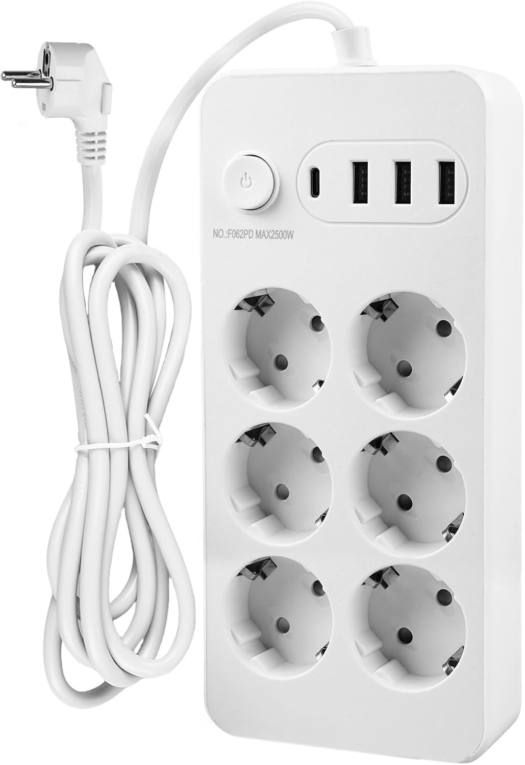 Multiprise USB avec interrupteur adaptateur de prise 6 prises prise USB parasurtenseur 2500 W 10 A câble de 2 m