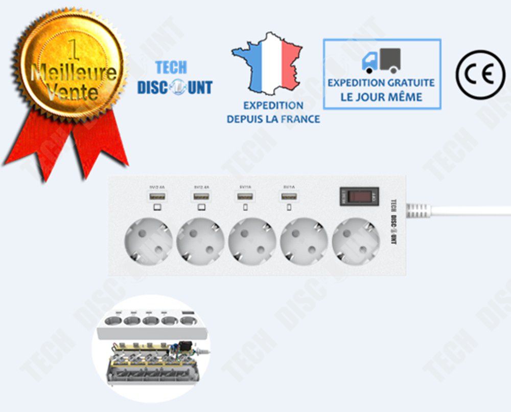 Multiprise Parafoudre Parasurtenseur 4Prise/port USB prise protection surcharge surtension secteur chargeur interrupteur rallonge