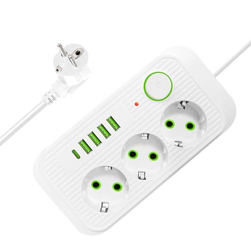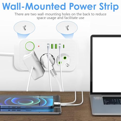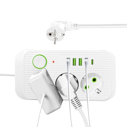 Bande de Prise Plate, rallonge Prise Murale Plate - Prise d'extension de Type C à Disposition à Angle de 45°,Prise d'extension de de Protection de sécurité, à Bande, 8 en 1, pour Tab