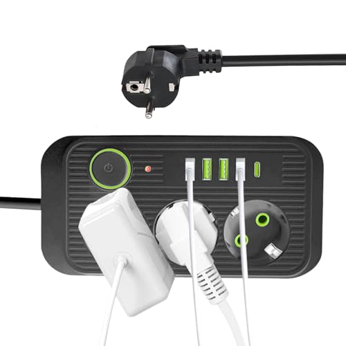 Prise de table, bureau avec USB C PD 20W, multiprise avec 4 interrupteurs individuels, prise coudée 4 prises avec 6 USB, prise plate, prise multiple murale avec câble de 2 m, noir