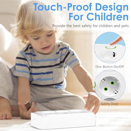 Rallonge Prise Murale Plate,Rallonge de Prise,Bande de Style européen Disposition d'angle à 45° | Protection de sécurité de Prise d'extension de Prise Plate de Bande 8 en 1 pour la Maison, Vivant