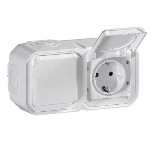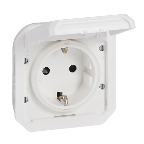 LEGRAND | Prise De Courant Plexo Standard Franco-Belge, Étanche IP55 Résistante À L'Eau Et À La Poussière, Résistance Aux Chocs IK08, Livrée Complète Pour Montage En Encastré Blanc