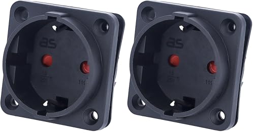 as - Schwabe Prise encastrable - Dimensions de la bride : 50 x 50 mm - Prise de contact de protection 230 V, 16 A - Prise à encastrer - IP20 en intérieur - Pour camping et caravane - Noir - 45081