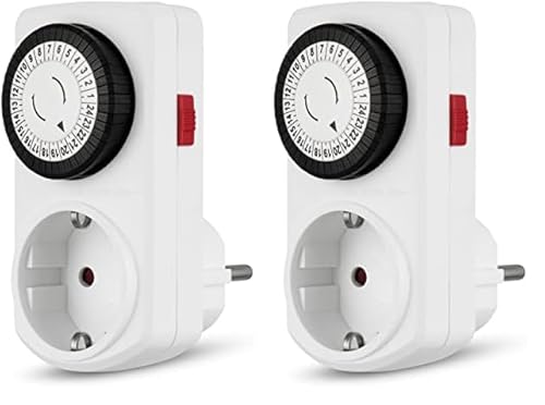 Extrastar Programmateur Prise Electrique Mécanique, Timer Prise Programmable 24 Heures, Prise Minuterie D'intervalle De 15 Minutes, Minuterie de Cycle Quotidien, Prise Programmateur Mécanique 3680W