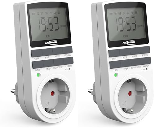 ANSMANN Programmateur Prise électrique AES4 (1 PCE) – Minuteur Prise électrique à économie d'énergie avec 10 programmes Pratiques – Prise réglable pour éclairages, télévision, routeur WiFi, etc.