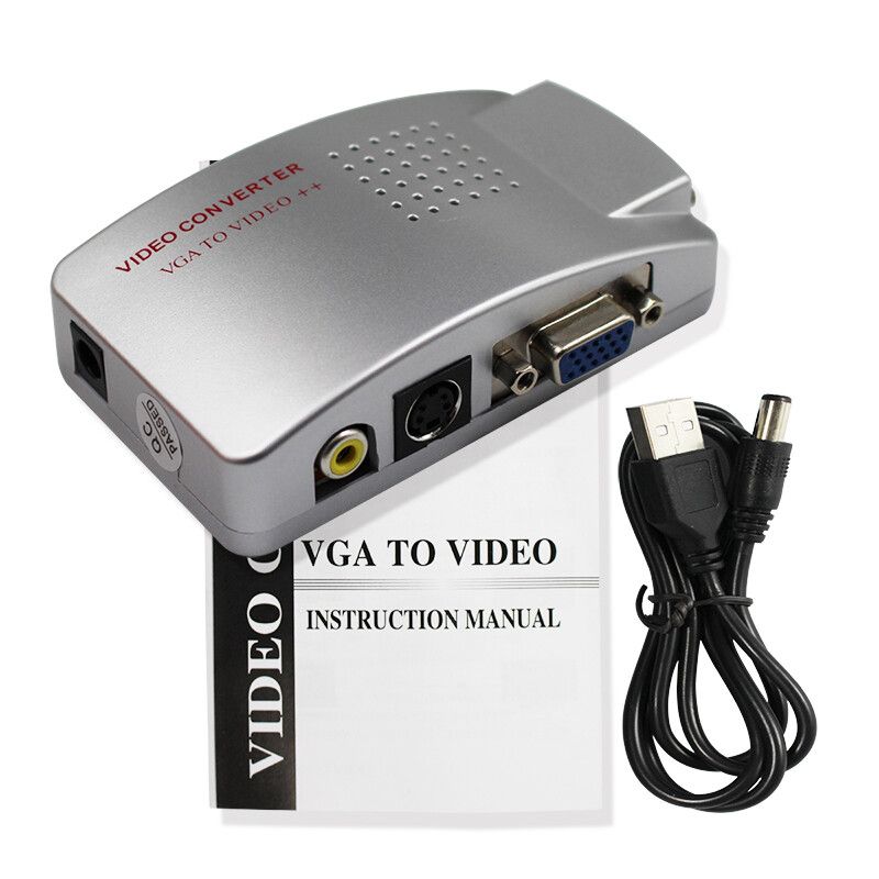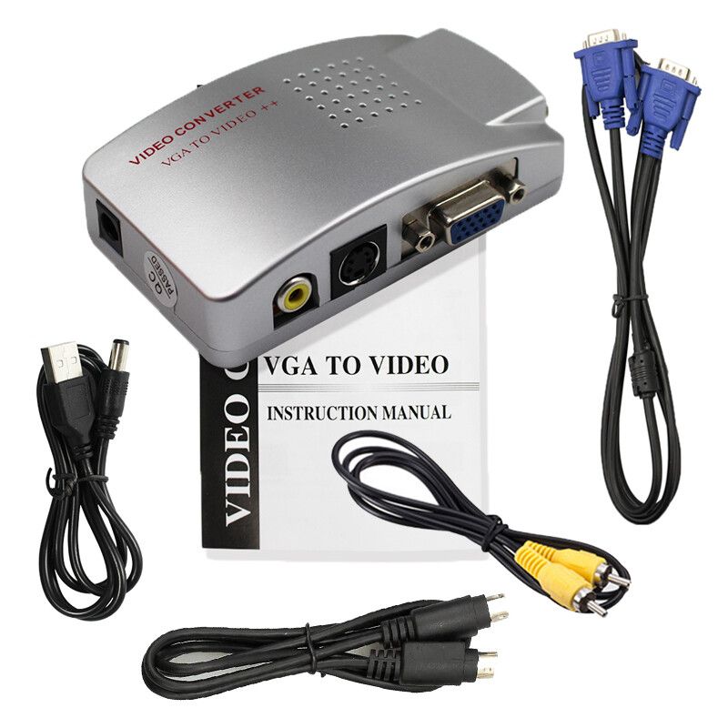 Convertisseur d'adaptateur vidéo composite VGA vers AV RCA,ordinateur portable,PC vers TV,boîtier de commutation,prise en charge S-vidéo,sortie VGA,signal d'ordinateur NTSC/PAL - Type A SET