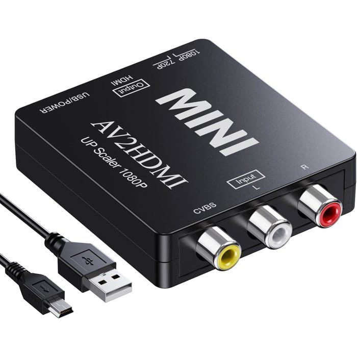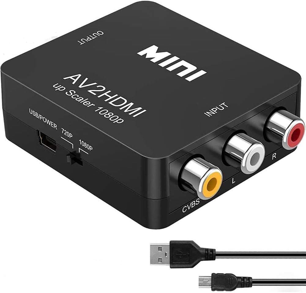 Adaptateur Rca Vers Hdmi Convertisseur Av En Hdmi, 3Rca Composite Av Vers Hdmi Convertisseur Prise En Charge 1080P Avec Av Câble Et Usb Câble Pour Pc/Xbox/Ps4/Ps3/Tv/Stb/Vhs/Dvd/Camera/Wii