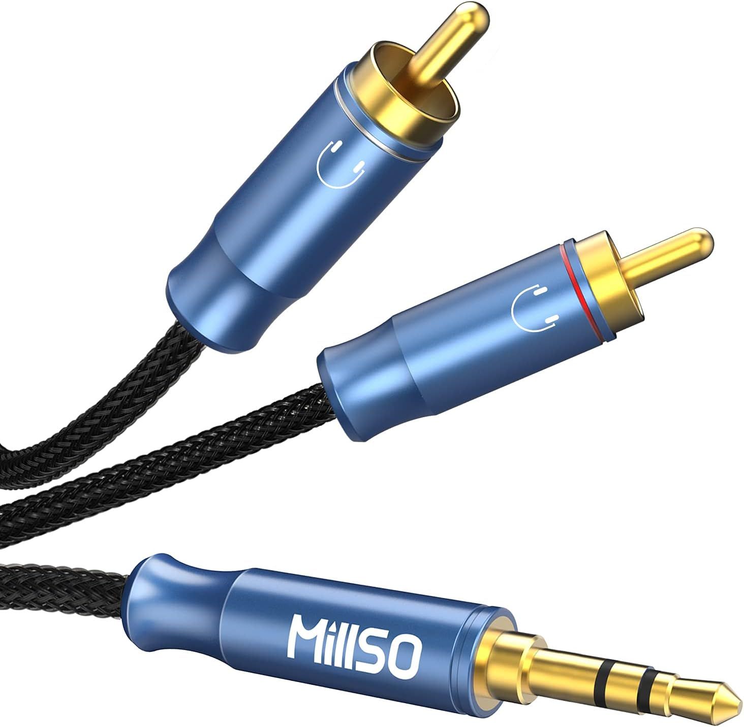 Câble jack vers RCA de 2,4 m - Prise jack 3,5 mm - Fiche jack 3,5 mm vers 2 fiches RCA vers jack - Câble stéréo pour smartphones, haut-parleurs, home cinéma, TV