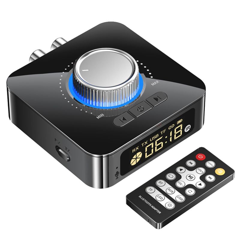 Adaptateur Bluetooth Avec télécommande Voiture Jack Recepteur Bluetooth Ampli Prise Jack Bluetooth 5.0 pour TV, Voiture, Haut-Parleurs, Ordinateurs de Bureau, Projecteurs, 3.5mm Aux/Rca/USB/Tf, 400mah