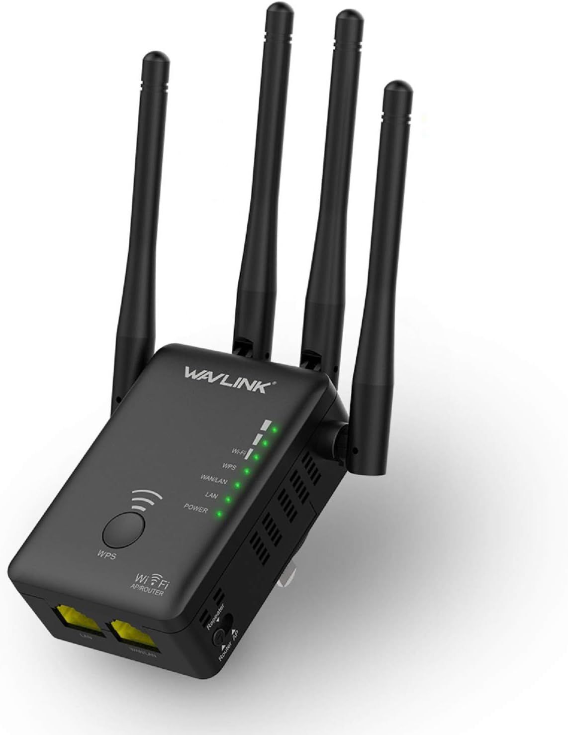 extension de signal WiFi 1200 Mbps,Répéteur WiFi, amplificateur de réseau WiFi double bande haute vitesse 2,4G Hz/5G Hz, prise en charge de la configuration à une clé WPS, avec 4 antennes externes