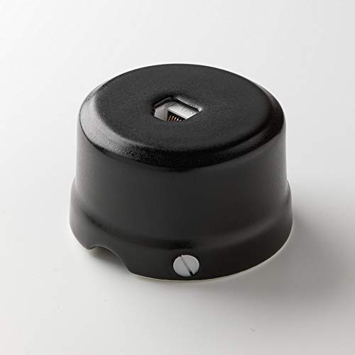 Klartext - Prise Telephonique-Données BELLE ÉPOQUE Vintage pour installation avec câble textile, en porcelaine fine artisanale, couleur noir mat