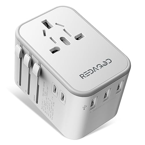 Redagod Adaptateur Voyage Tout-en-Un avec 4 USB 5.6A et 1 USB C 2023 Adaptateur de Prise Universelle Dépoli France vers Anglaise, USA, Japon, Canada Italie, Australie