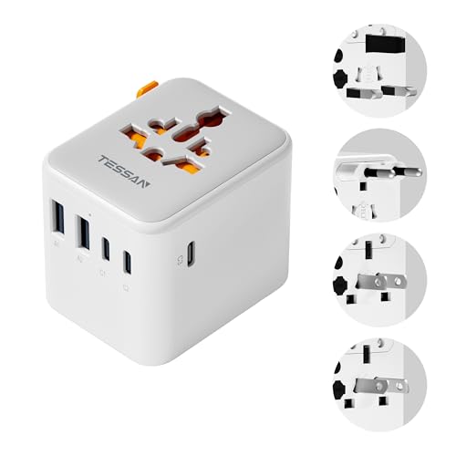 TESSAN GaN Adaptateur Prise Universelle, Charge Rapide 140W, Chargeur Universel de Voyage avec 3 USB C et 1 USB A, Adaptateur Internationale pour Japon, USA, Australie, Anglaise