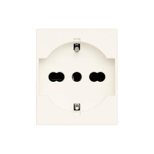 BTICINO MatixGO Prise de courant universelle 2 modules Blanc SJW4140A16F Prise plate standard allemande et italienne, entraxe 19 mm et 26 mm