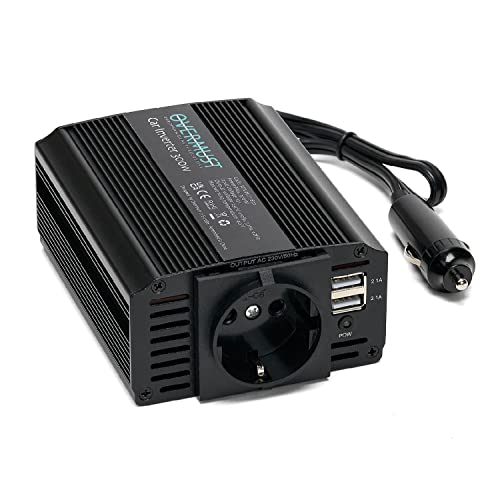 OVERMUST - Inverter Voiture 12V 220V 300W, Adaptateur Prise Allume Cigare, Transformateur 12V 220V, Charge jusqu'à 3 Appareils, Protection Surchauffe, 2 Ports USB, Prise Schuko