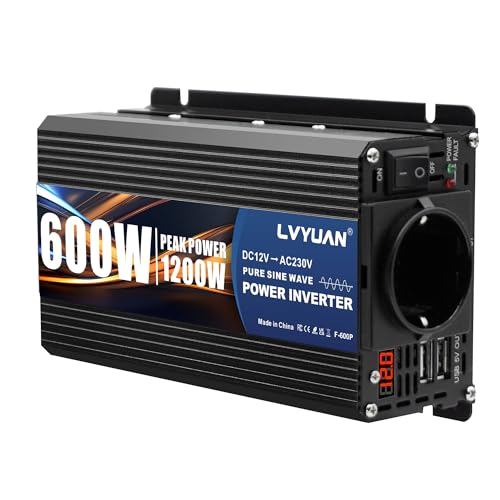 LVYUAN Convertisseur 12V 220V 600W /1200W Convertisseur de Tension Transformateur Onduleur Inverter Auto Cigarette Adaptateur avec 2 Ports USB et Prise EU