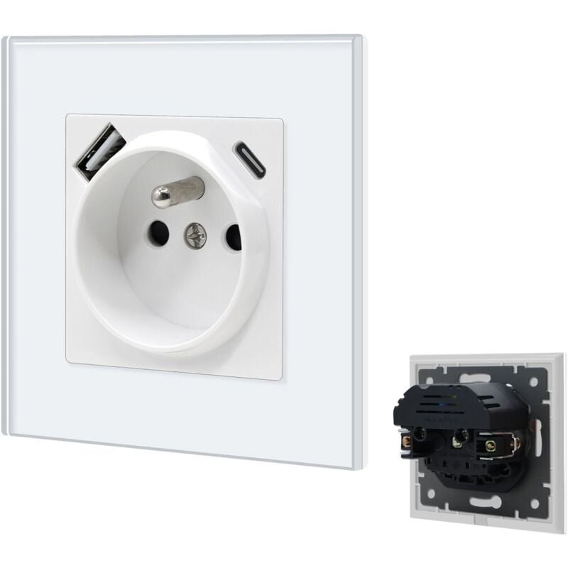 Prise Murale USB C,Prises Electriques Standard avec des griffes,Multiprise Murale avec USB Max 2.1A,16A Prise de Courant Alternatif,Convient