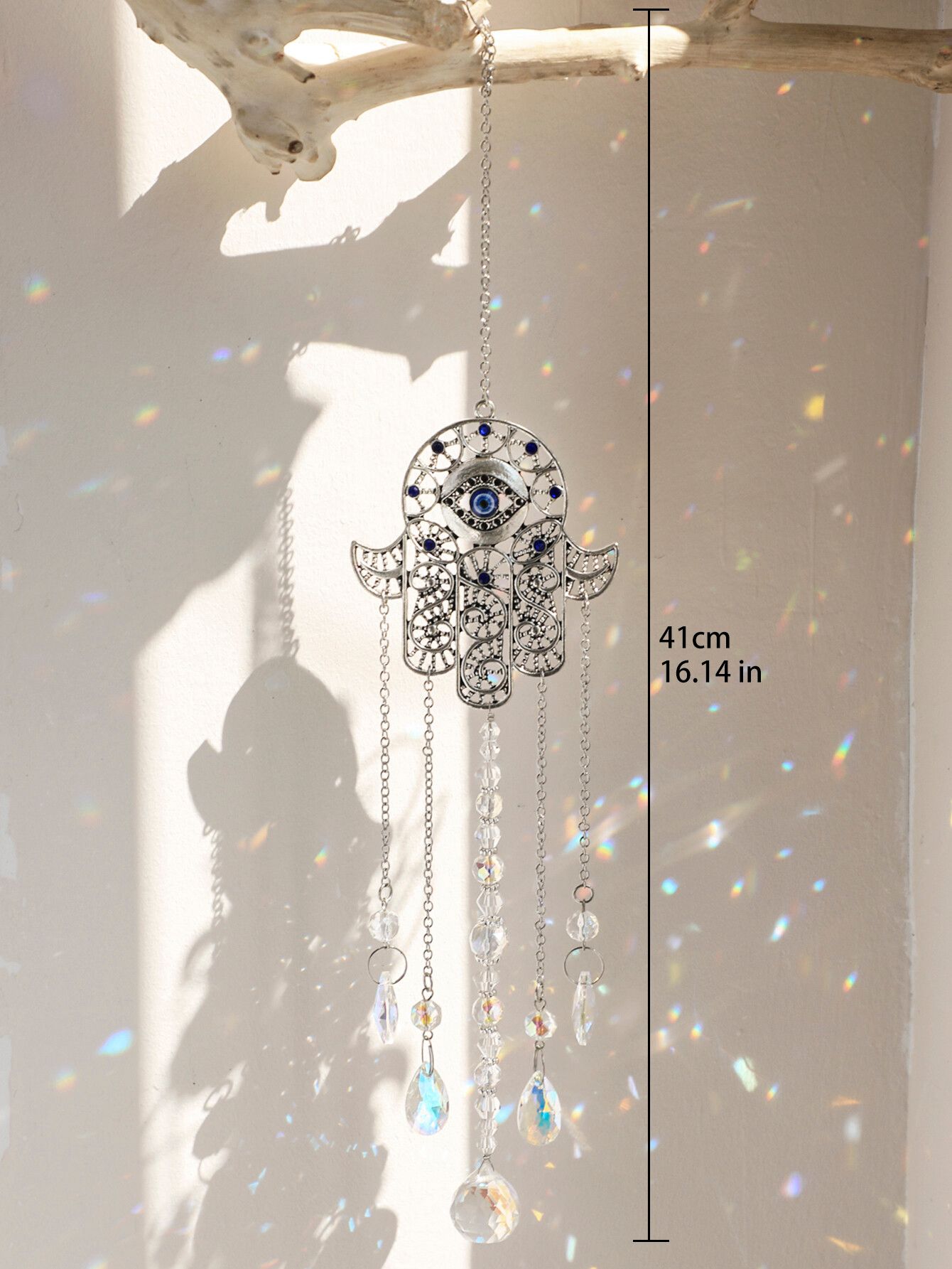 CitroSun Evil Eye Hamsa Hand Rainbow Maker,Vitrail Chakra Light Catcher,Prism,Home Garden Decoration - Type suncatcher MS6555