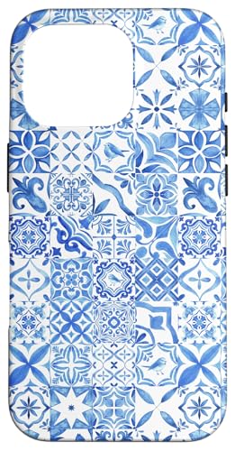 Blue Tile Azulejos Esthétique Européenne Summer Pattern Art Coque pour iPhone 16 Pro