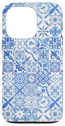 Blue Tile Azulejos Esthétique Européenne Summer Pattern Art Coque pour iPhone 13 Pro