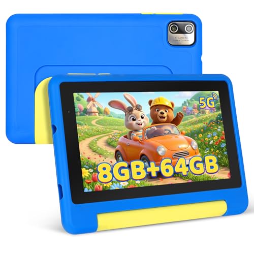 MUISOO Tablette pour Enfant, 7 Pouces Enfant Tablette, processeur Quad-Core, écran HD 1024x600, 8GB+64GB+1TB TF étendre, WiFi 6, BT5.2, Double Caméra Android Tablettes, Bleu
