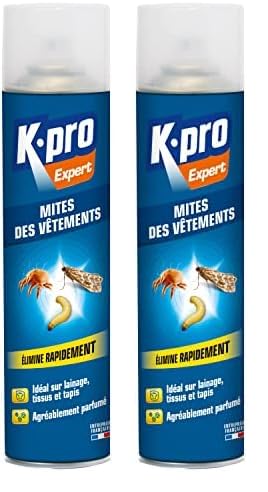 K.PRO Expert - Spray Aérosol Anti-Mites des Vêtements et Larves - Action Immédiate - Protège Contre les Nouvelles Infestations - Facile d'Utilisation - Technique Professionnelle - 400ml (Lot de 2)