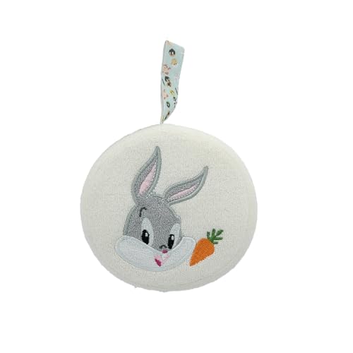 Looney Tunes - Éponge de Bain Brodée Bugs Bunny Bébé - Mousse Onctueuse Ultra-Douce Absorbante – Nettoyage Corps Visage – Accessoire Hygiène Baignoire Douche Enfant, Naissance – Produit Warner Bros
