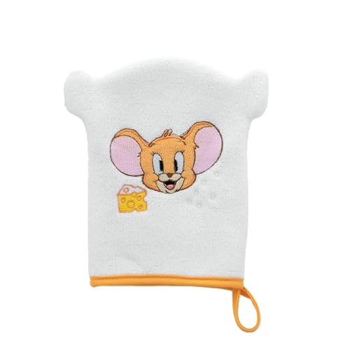 Looney Tunes – Gant De Toilette Bébé Jerry –Toilette Enfant Douce - Nettoyage Peau, Visage, Corps - Gant Lavant Brodé – Tom & Jerry– Cadeau Naissance - Lavable, Réutilisable - Produit Officiel