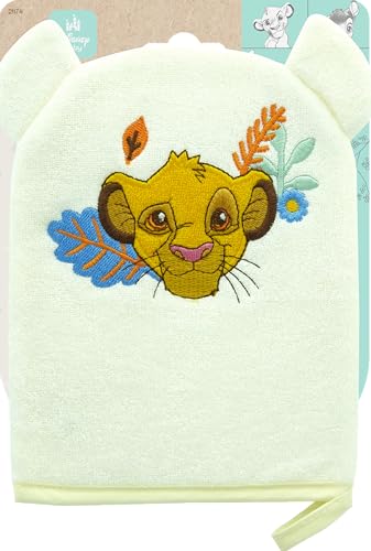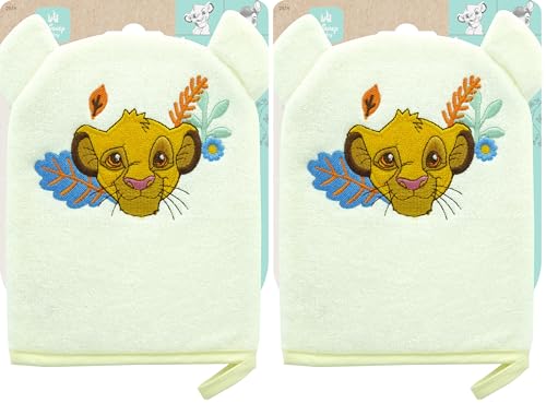 Disney – Gant De Toilette Bébé Simba –Toilette Enfant Douce - Nettoyage Peau, Visage, Corps - Gant Lavant Brodé – Le Roi Lion – Cadeau Naissance - Lavable, Réutilisable - Produit Officiel (Lot de 2)