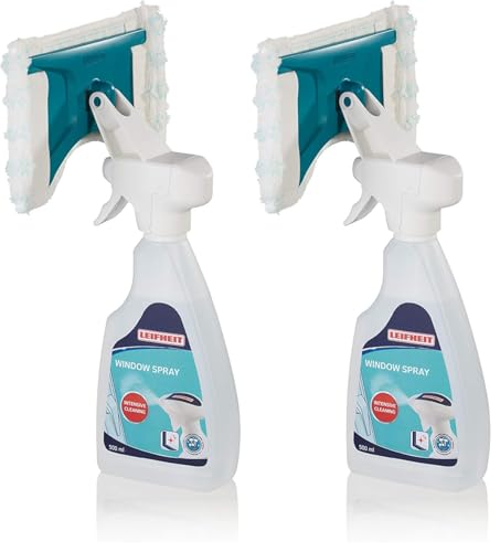 Leifheit Window Spray Cleaner micro duo, Nettoyant vitres 500 ml avec housse, Spray nettoyant lave-vitres avec articulation flexible, Produit nettoyant à flacon rechargeable avec housse de nettoyage