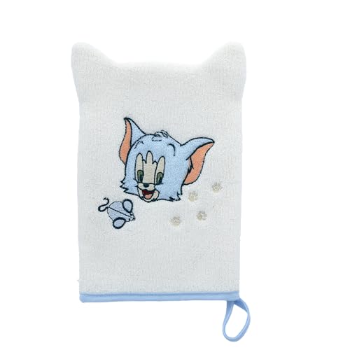 Looney Tunes – Gant De Toilette Bébé Tom –Toilette Enfant Douce - Nettoyage Peau, Visage, Corps - Gant Lavant Brodé – Tom & Jerry– Cadeau Naissance - Lavable, Réutilisable - Produit Officiel
