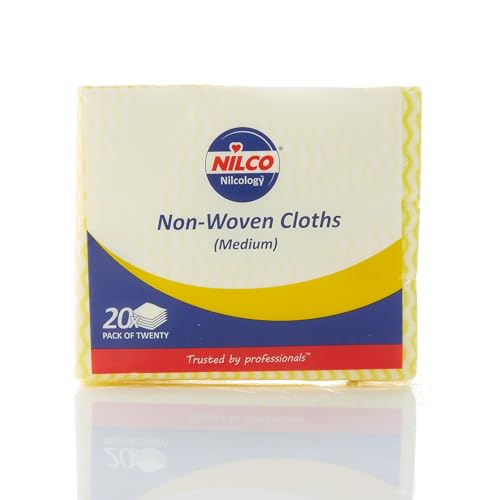 Nilco Chiffons Non-tissés Nilco, Solution de Nettoyage en Viscose et Polyester, Polyvalente et résistante pour Un Usage Domestique et Professionnel - Jaune, Haute capacité d'absorption, Paquet de 20