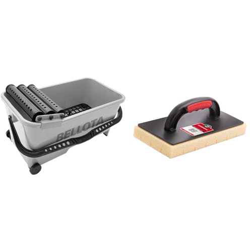Bellota 58003 - Bac de Nettoyage Professionnel pour travaux de carrelage - Seau avec Roues & 5888 - Taloche de Nettoyage - Taloche avec Eponge pour Carreleurs - avec Poignée Ergonomique