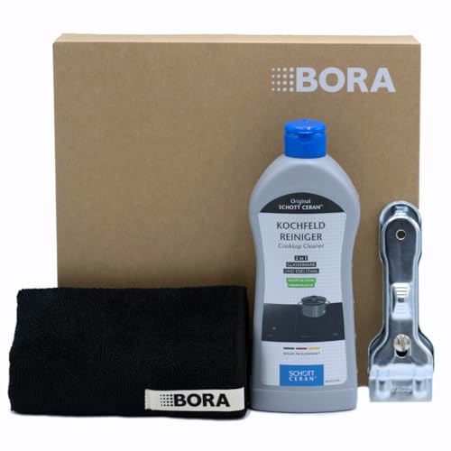 BORA Nettoyant pour Vitrocéramique, Lot de Nettoyage, y c. Racloir et Chiffon Microfibre, Produit Nettoyant Spécial Vitrocéramique et Induction (300 ML)
