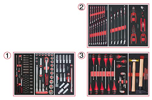 KS TOOLS - 714.0158 - Composition d'outils 3 tiroirs pour servante, 158 pièces - Mousse imputrescible résistante huiles et Produits Chimiques - Empreintes Laser - Outillage Professionnel de qualité
