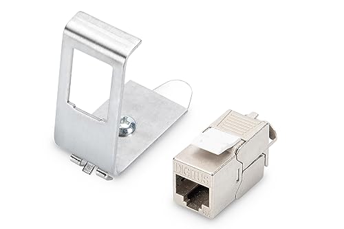 DIGITUS Set: Adaptateur pour profilé Chapeau - 1 pièce - avec 1x Module Keystone Cat6A - Coudé à 45° - Acier Inoxydable - Boîtier Ouvert