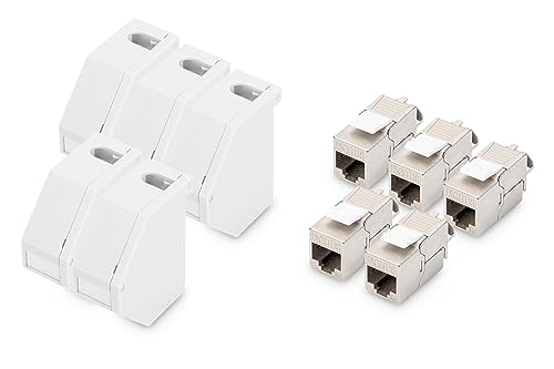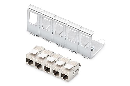 DIGITUS Set: Adaptateur pour profilé Chapeau - 5 pièce - avec 5X Module Keystone Cat6A - Coudé à 45° - Acier Inoxydable - Boîtier Ouvert