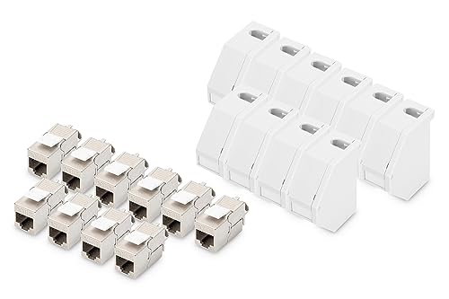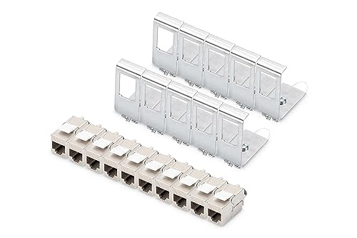 DIGITUS Set: Adaptateur pour profilé Chapeau - 10 pièce - avec 10x Module Keystone Cat6A - Coudé à 45° - Acier Inoxydable - Boîtier Ouvert