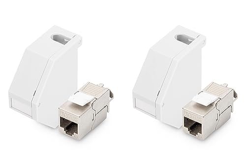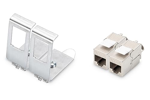 DIGITUS Set: Adaptateur pour profilé Chapeau - 2 pièce - avec 2X Module Keystone Cat6A - Coudé à 45° - Acier Inoxydable - Boîtier Ouvert