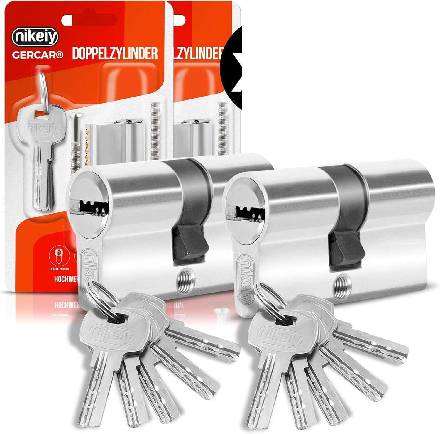 SEPT-Cylindre de serrure profilé 45/45 - Double cylindre - Avec 10 clés - Lot de 2 clés identiques - Longueur : 90 mm, A : 45 B : 45 - Lot de 2.