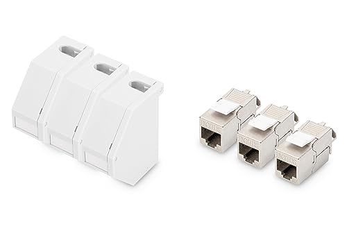 DIGITUS Set: Adaptateur pour profilé chapeau - 3 pièces - Avec 3x module Keystone Cat6A - Coudé à 45° - Zone d'étiquetage - Avec ressort de mise à la terre - Gris