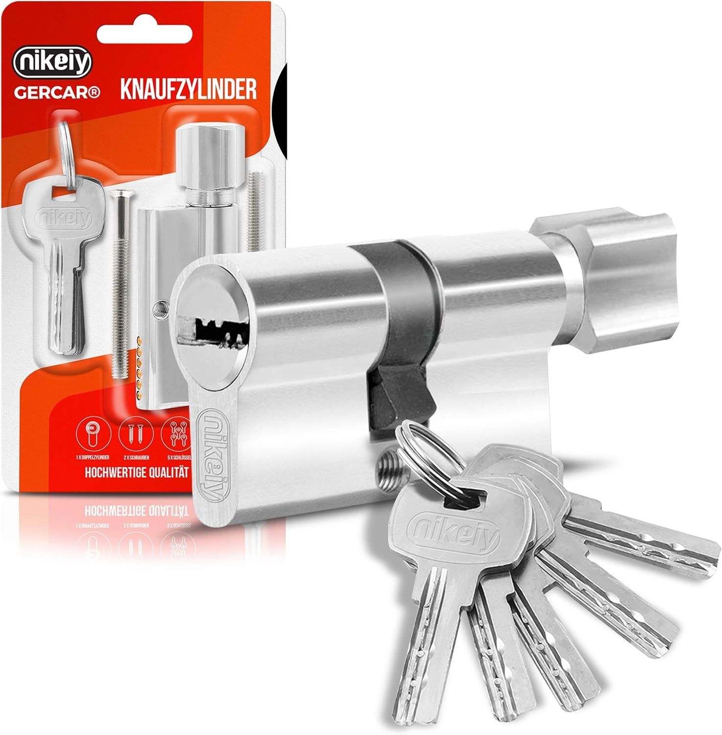 SEPT-Cylindre profilé, professionnel, 45/50, massif, double cylindre, serrure à cylindre/de porte, en laiton nickelé, avec 5 clés, clé réversible, longueur : 95 mm, 1 de A : 45 B : 50.