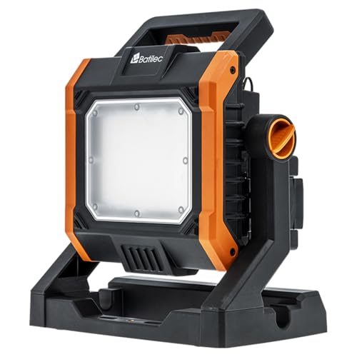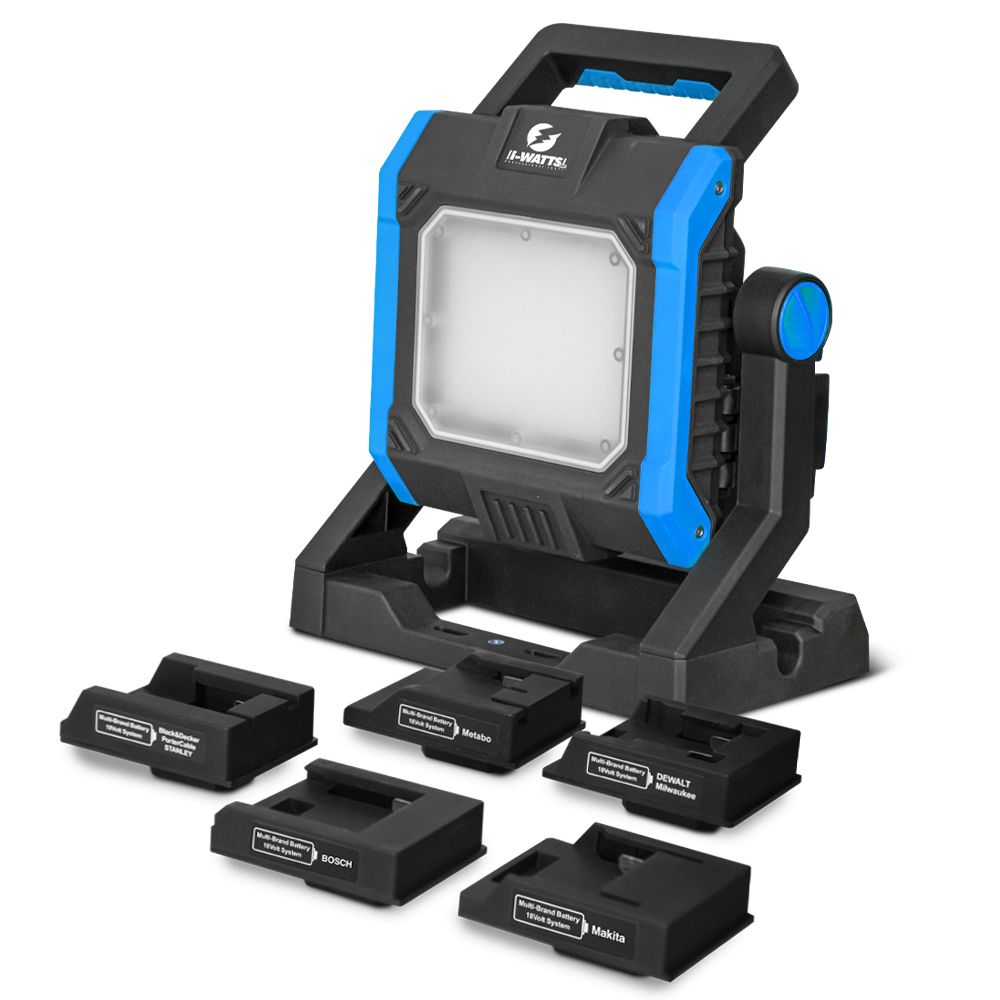 BATILEC - Projecteur de chantier 4000 lm + 5 adaptateurs 18-20V - AC/DC avec câble de 3 mètres - Compatible pour batterie Black & Decker, Bosch, Dewalt, Makita, Metabo, Milwaukee et Stanley - IP65