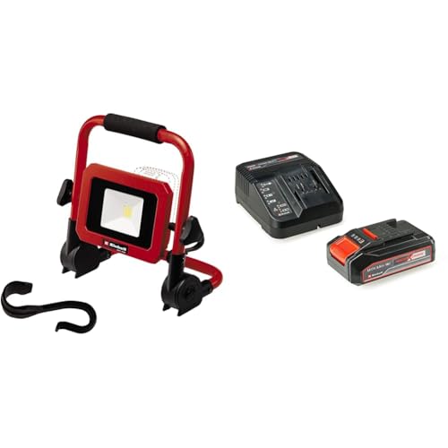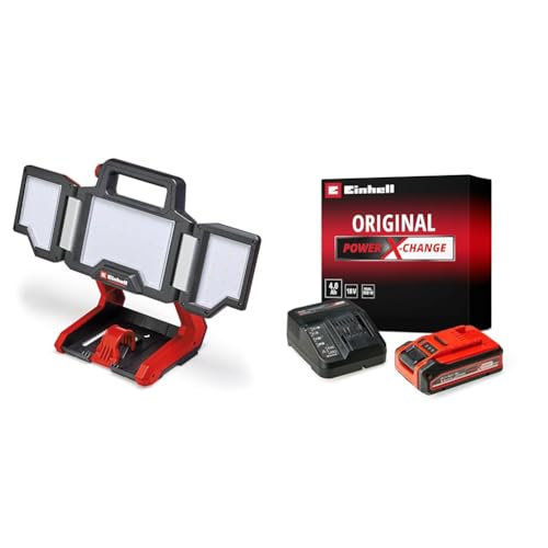 Einhell Projecteur de chantier sans fil TC-CL 18/1800 Li Power X-Change (18V, li-ion, lampe, LED puissante, variateur rotatif, tête orientable 360°, pied repliable) avec Chargeur et Batterie 2,5Ah