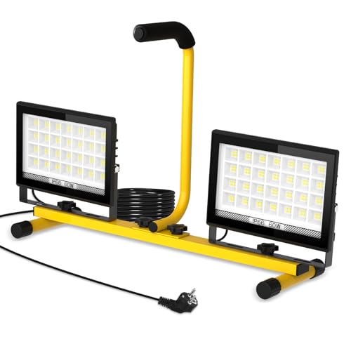 T-SUN 2 x 60W Projecteur de Chantier LED, 12000LM Lampe de Chantier, Blanc Froid 6000K Lampe de Travail LED avec Câble de 4M, Étanche IP66 Projecteur LED pour Atelier, Maintenance, Chantier