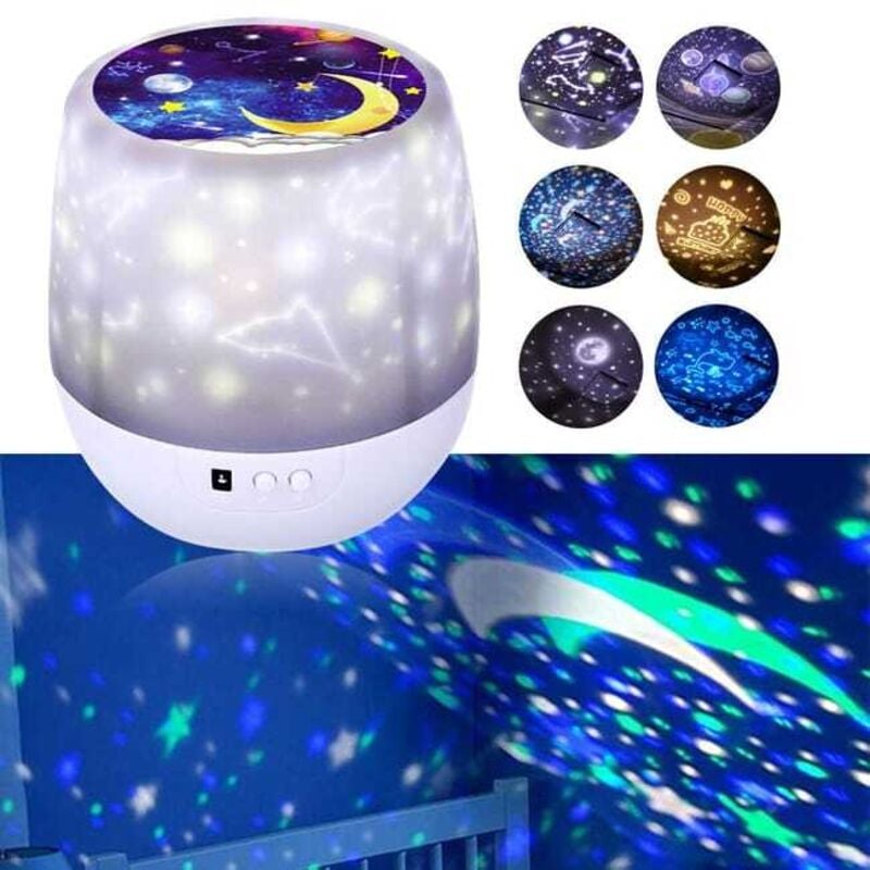 Projecteur ciel étoilé rotatif 360°, télécommande, 4 modes/6 thèmes/7 luminosités/8 musiques