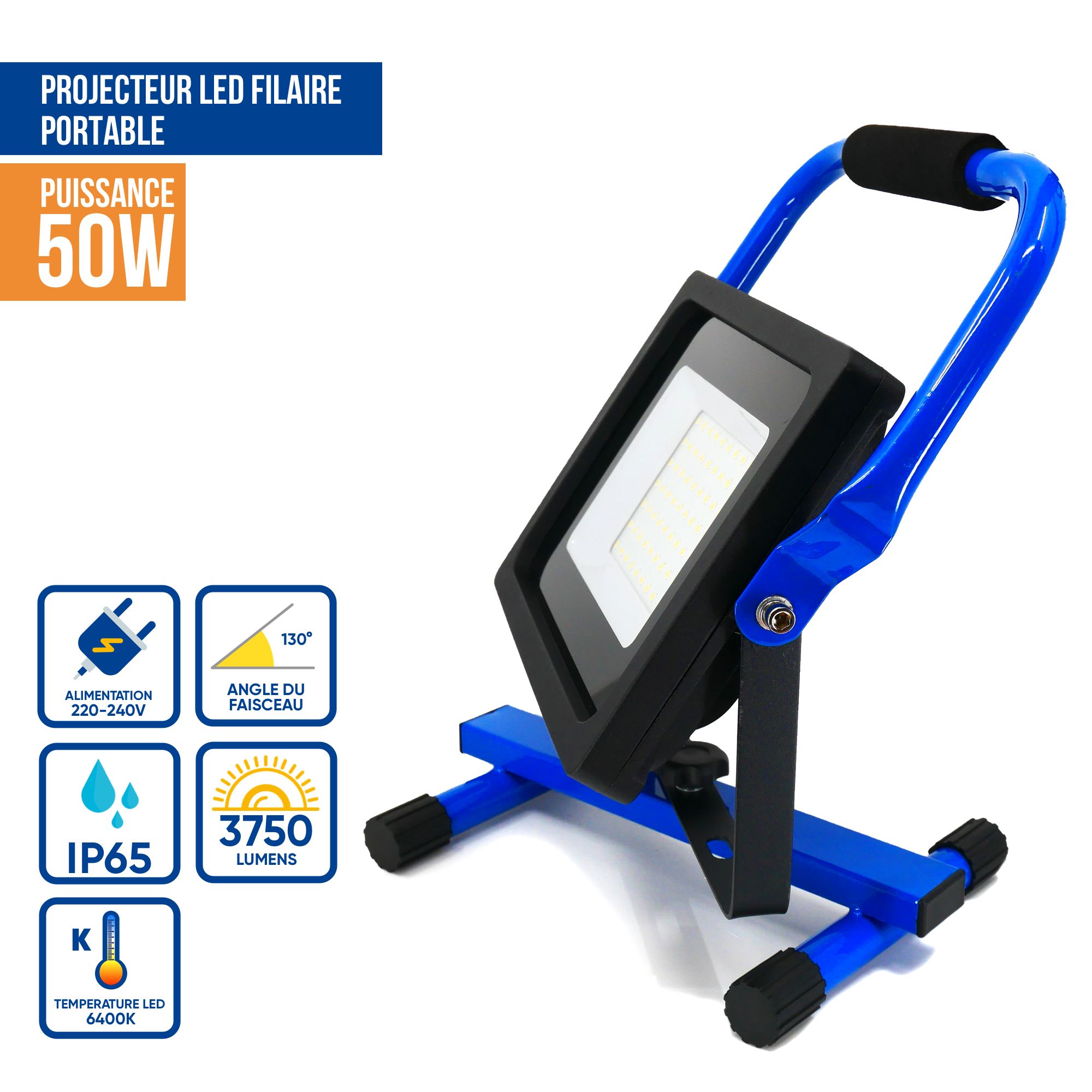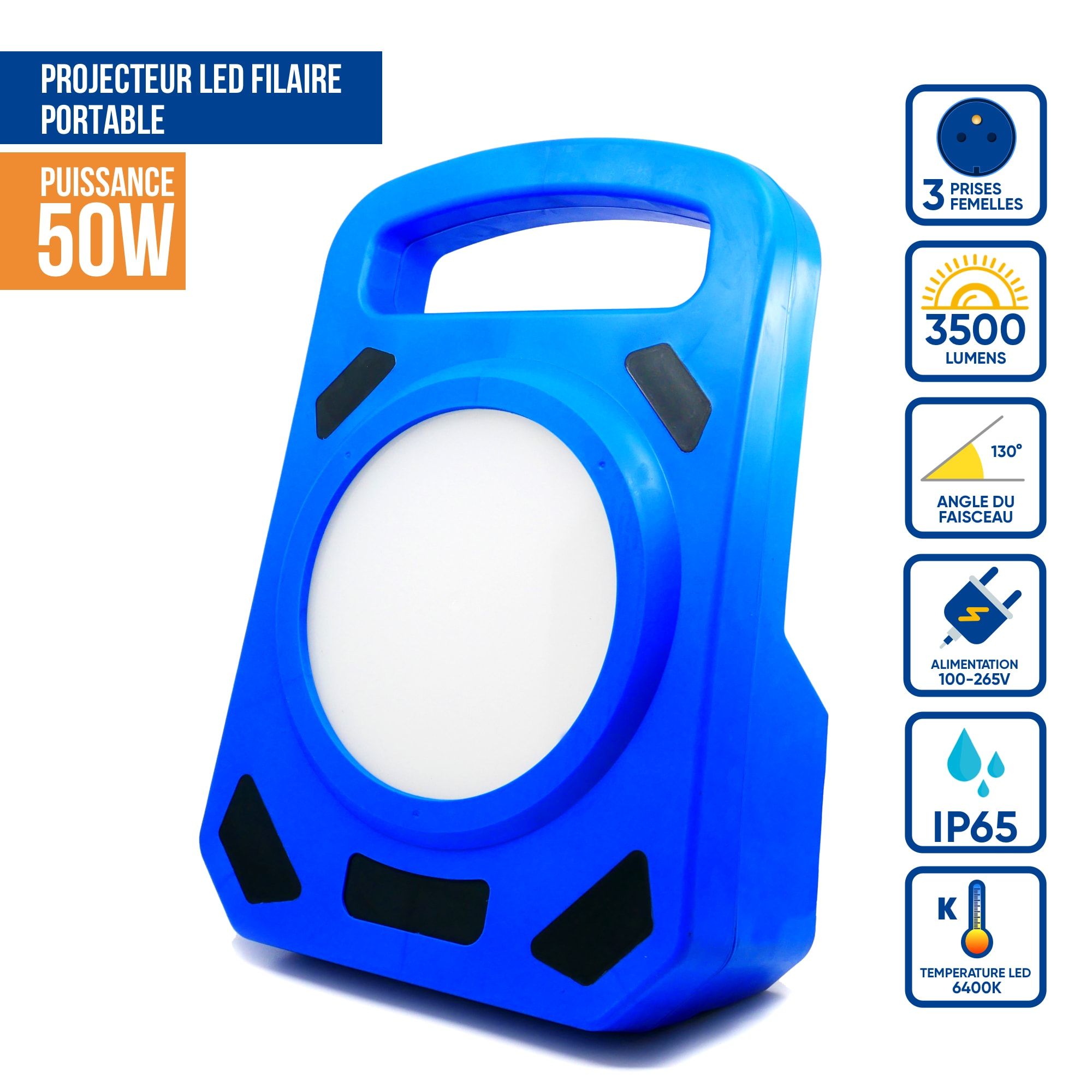 Projecteur De Chantier Led 50w Professionnel (3 Prises Femelles Au Dos) Ip54 - KELI