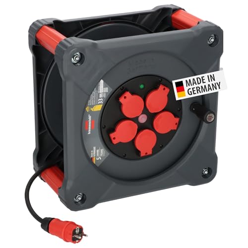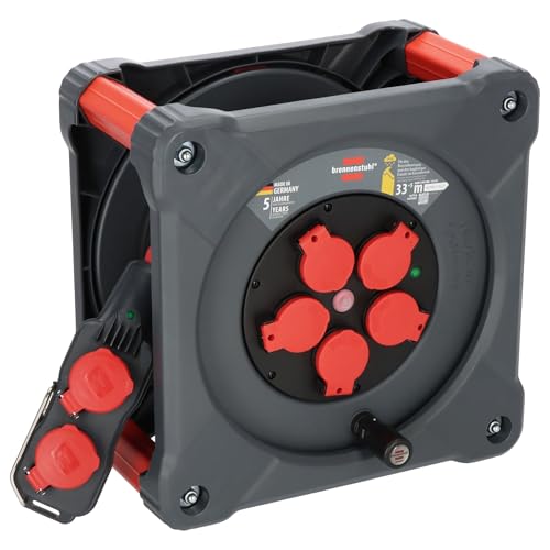 Brennenstuhl Enrouleur de câble Professionnel pour Chantier avec Powerblock KC 3210 5 (33+5m, câble H07BQ-F3G2,5 en Rouge, 5 Prises, Utilisation permanente en extérieur, fabriqué en Allemagne)