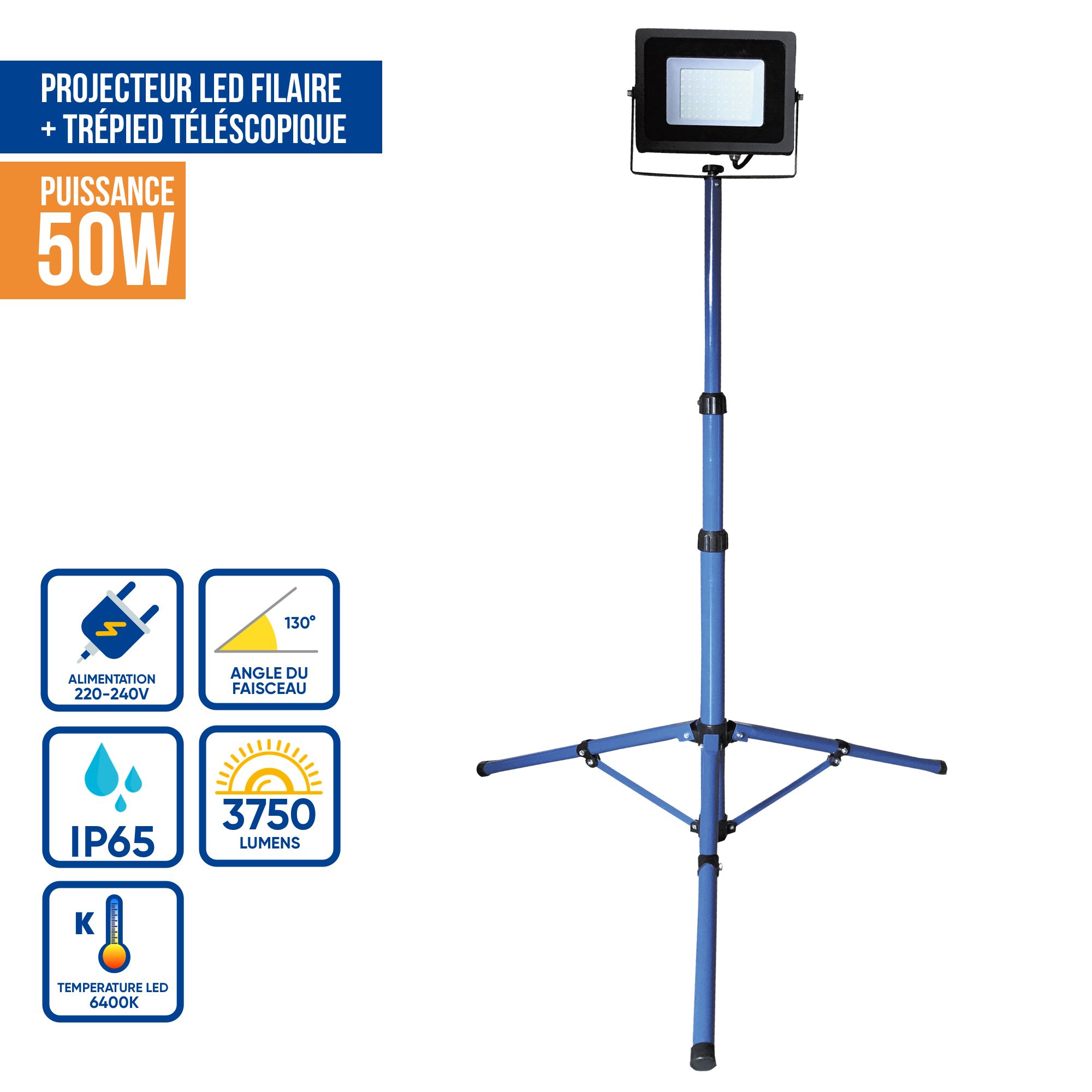 Projecteur De Chantier Led 50w 1 Tête Sur Pied Professionnel Ip65 - KELI