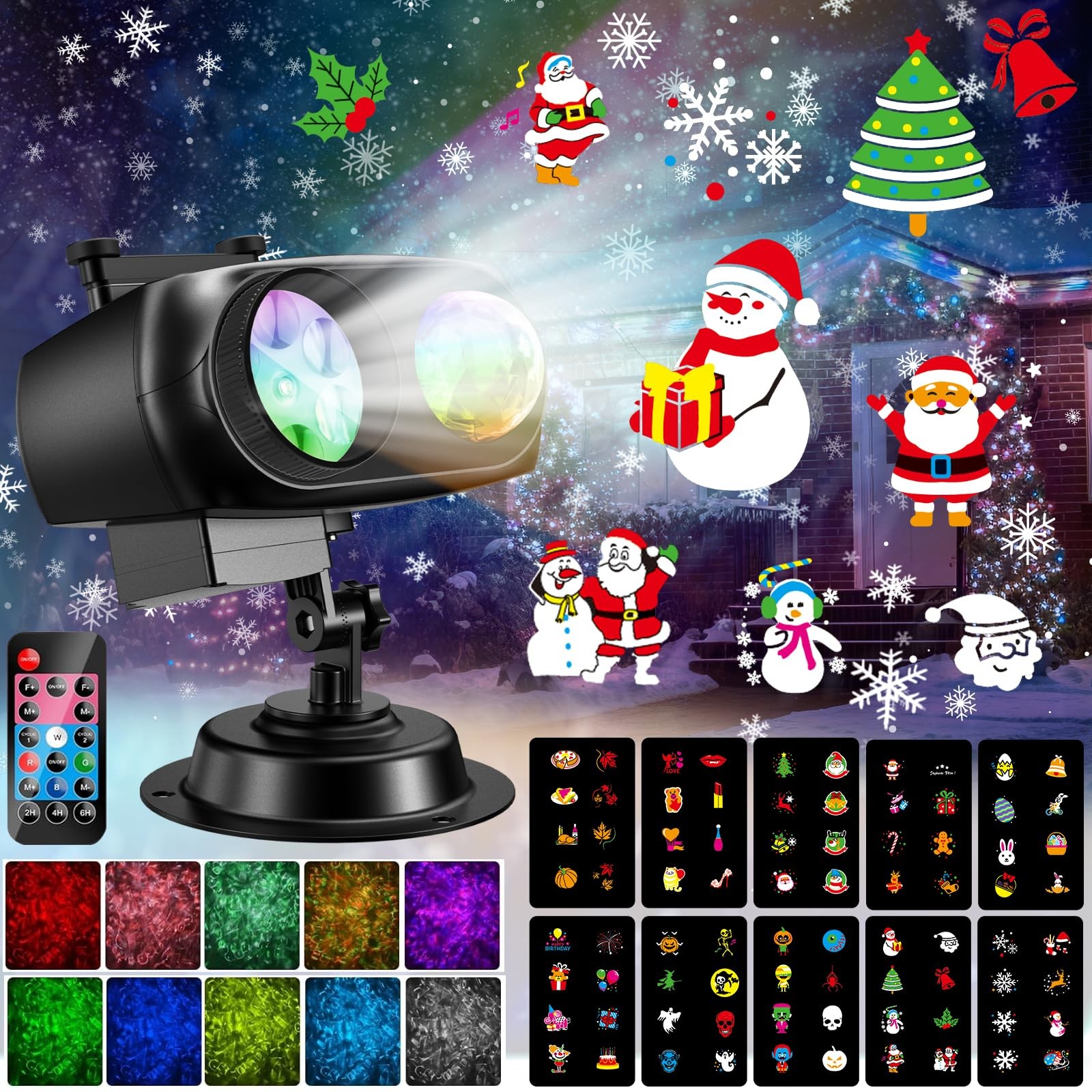 ROVLAK Projecteur Extérieur/Intérieur Étanche avec 12 Diapositives et 10 Couleurs de Vagues, Projecteur de Noël et Halloween avec Télécommande pour Fêtes